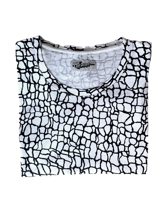 Remera con estampa inspirada en el mitico tejido punk de los 70 y sobremanga al corte. PUNK. Ver más detalles